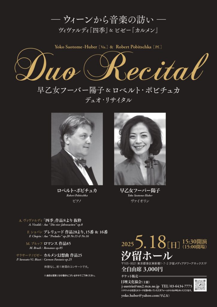 *終了*【2025/5/18】早乙女フーバー陽子&ロベルト・ポビチュカ デュオ・リサイタル
