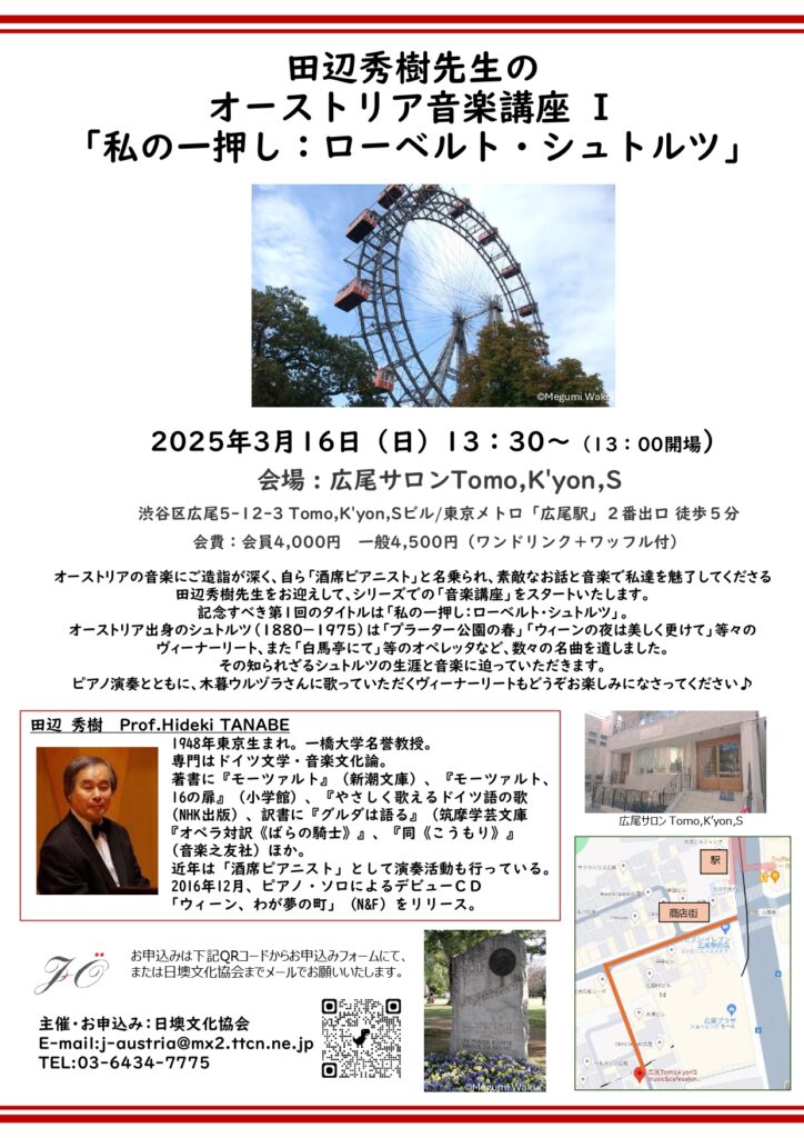 *終了*【2025/3/16】田辺秀樹先生のオーストリア音楽講座Ⅰ「私の一押し:ローベルト・シュトルツ」