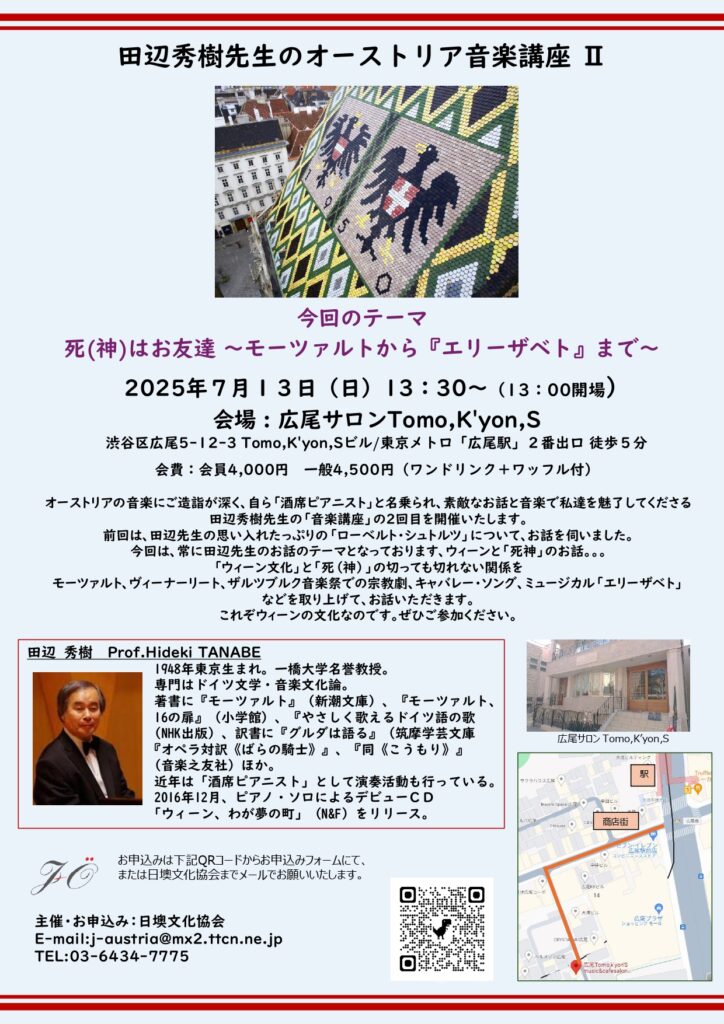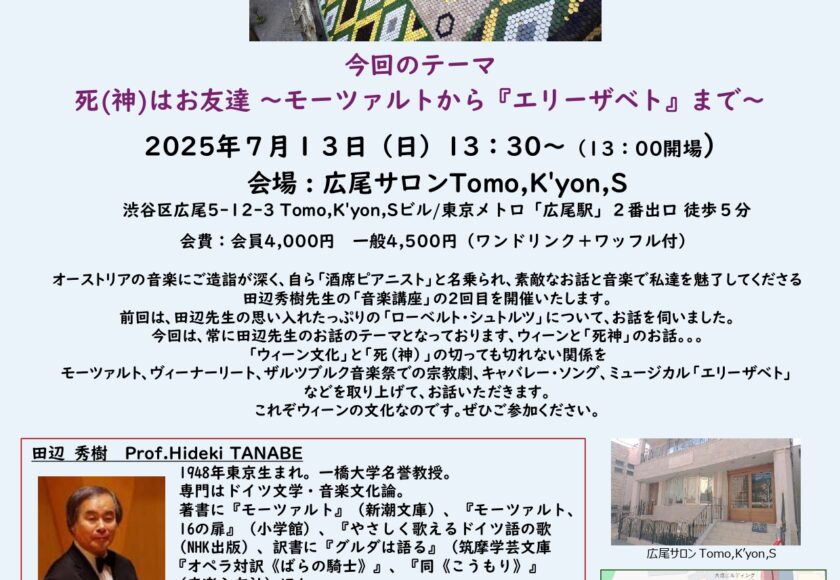 *終了*【2025/7/13】田辺秀樹先生のオーストリア音楽講座Ⅱ「死(神)はお友達~モーツァルトから『エリーザベト』まで~」