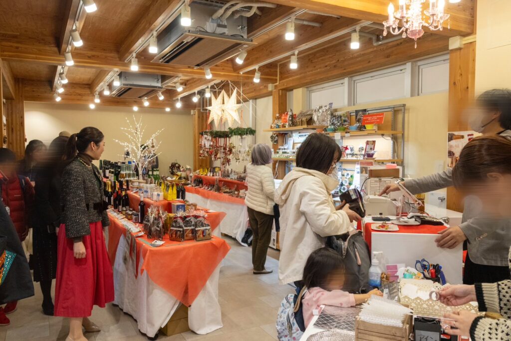 △ずらりと並んだワインやオーナメントは圧巻!多くのお客様にお越しいただきました。